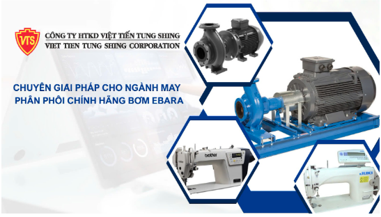 Tại Việt Nam, Việt Tiến Tung Shing (VTS) là đơn vị phân phối chính thức các dòng máy bơm Ebara chính hãng, phục vụ cho các công trình dân dụng, nhà máy, khách sạn, bệnh viện, và khu công nghiệp trên toàn quốc. Với hơn 30 năm kinh nghiệm trong lĩnh vực cơ điện và thiết bị công nghiệp, VTS cam kết: