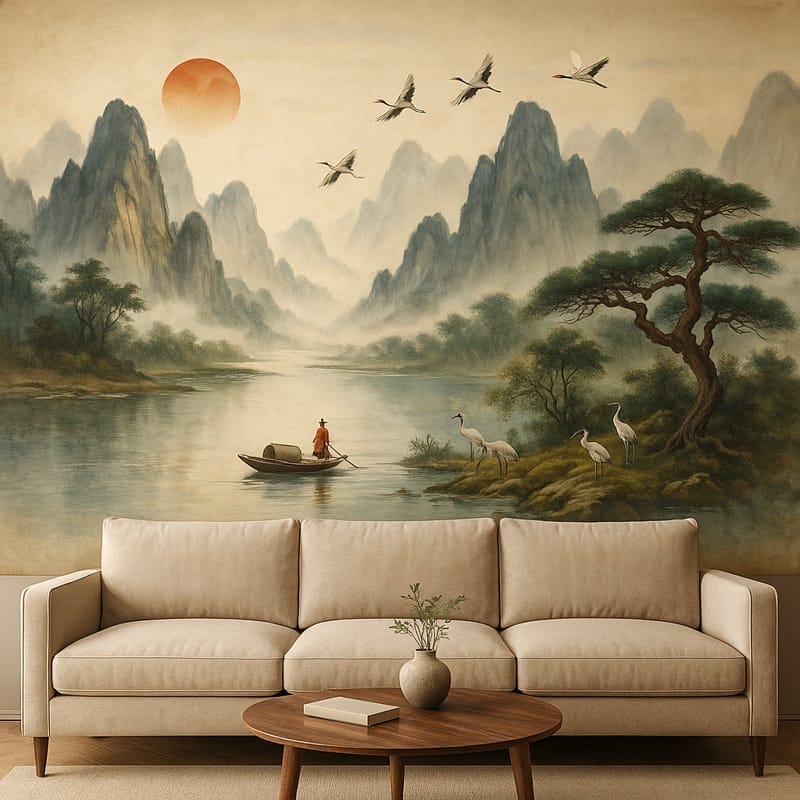 Tranh Dán Tường Phong Cảnh Trung Quốc – Xu Hướng Decor Kết Hợp Cổ Trang & Hiện Đại